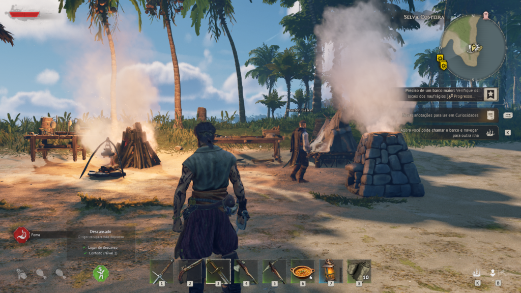 A partir desse ponto, o jogador precisa reorganizar seus recursos, libertar integrantes da tripulação espalhados pelo mapa e trabalhar para conquistar um novo navio, elemento essencial para avançar na campanha. Essa estrutura inicial ajuda a estabelecer uma progressão interessante, combinando mecânicas de sobrevivência com exploração e evolução gradual do personagem, algo que pode agradar bastante fãs do gênero. 🏴‍☠️🎮⚓